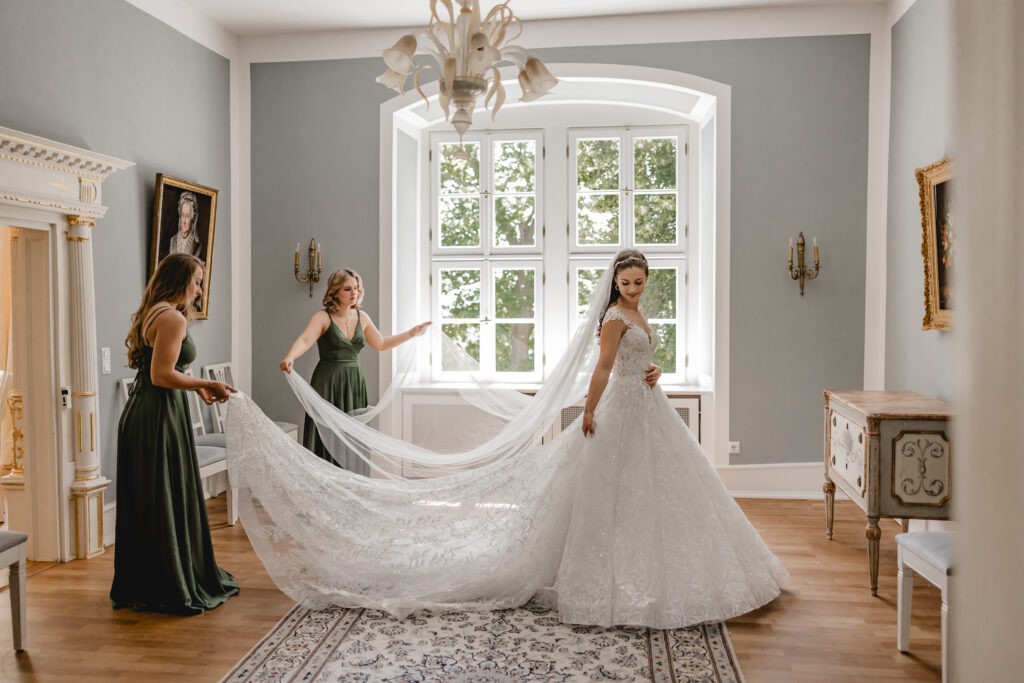 Klärt auch, wie viel Anleitung ihr möchtet. Soll der Fotograf euch komplett sich selbst überlassen und nur beobachten? Oder helfen euch konkrete Anweisungen, euch wohlzufühlen? Die meisten Fotografen finden einen Mittelweg, aber nur wenn sie eure Präferenzen kennen. Ein kurzes Vorgespräch zu diesem Thema macht den Unterschied zwischen durchschnittlichen und außergewöhnlichen First Look Fotos. In diesem Zuge wird auch die Frage nach einem First Look mit euren Mädels zur Frage kommen. Macht euch hierrüber ebenfalls schon Gedanken.
