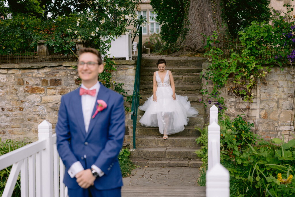 Sprecht vor dem First Look mit eurem Fotografen über eure Erwartungen. Manche Paare wünschen sich dokumentarische, authentische Aufnahmen der echten Emotionen. Andere möchten nach der ersten Reaktion auch einige inszenierte, romantische Posen. Beides ist legitim, aber euer Fotograf muss wissen, in welche Richtung es gehen soll.