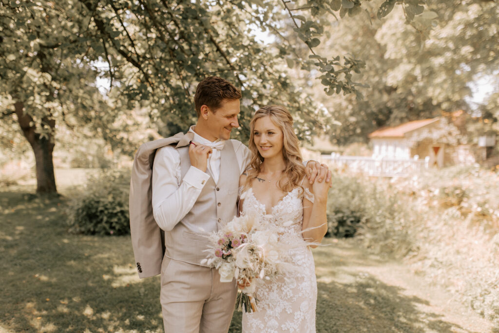 Nein, ihr braucht keinen aufwendigen Ort, aber er sollte eine ruhige Atmosphäre bieten. Ein Garten, eine Wiese mit Bäumen, ein stiller Innenhof oder auch ein geschmackvoll eingerichteter Raum mit gutem Licht reichen aus. Wichtig ist, dass der Ort vorab mit eurem Fotografen besichtigt wird, damit ihr wisst, wie das Licht fällt und wo ihr ungestört seid.