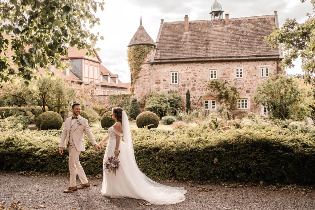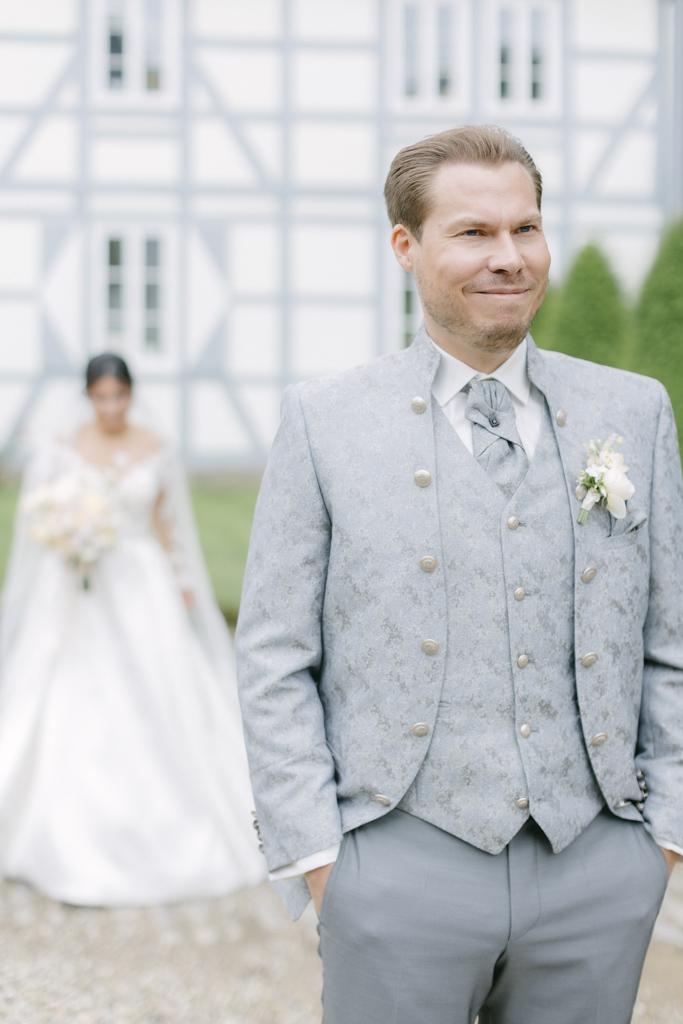 Lisa steht in ihrem Brautkleid am Rand des Schlosses, die Hände zittern leicht, während ich als Hochzeitsplanerin ihr noch einmal zunicke. Gleich wird er sich umdrehen. Gleich wird Frederik sie zum ersten Mal sehen. Ihr Herz rast, obwohl die Zeremonie erst in zwei Stunden beginnt. Sie atmet tief durch und dreht sich langsam um. Frederik steht etwa fünf Meter entfernt, die Hände vor dem Gesicht, dann lässt er sie sinken. Seine Augen werden feucht. „Du bist so wunderschön“, flüstert er. Lisa spürt, wie die Anspannung nachlässt. Sie gehen aufeinander zu, umarmen sich lange, lachen und weinen gleichzeitig. Niemand außer dem Foto- und Videografen und ich als Hochzeitsplanerin sind dabei. Kein Blitzlichtgewitter, keine hundert Gäste, die zuschauen. Nur sie beide in diesem Moment. Als sie sich voneinander lösen, ist die Nervosität weg. Sie fühlen sich bereit für den Rest des Tages. Das ist der First Look.