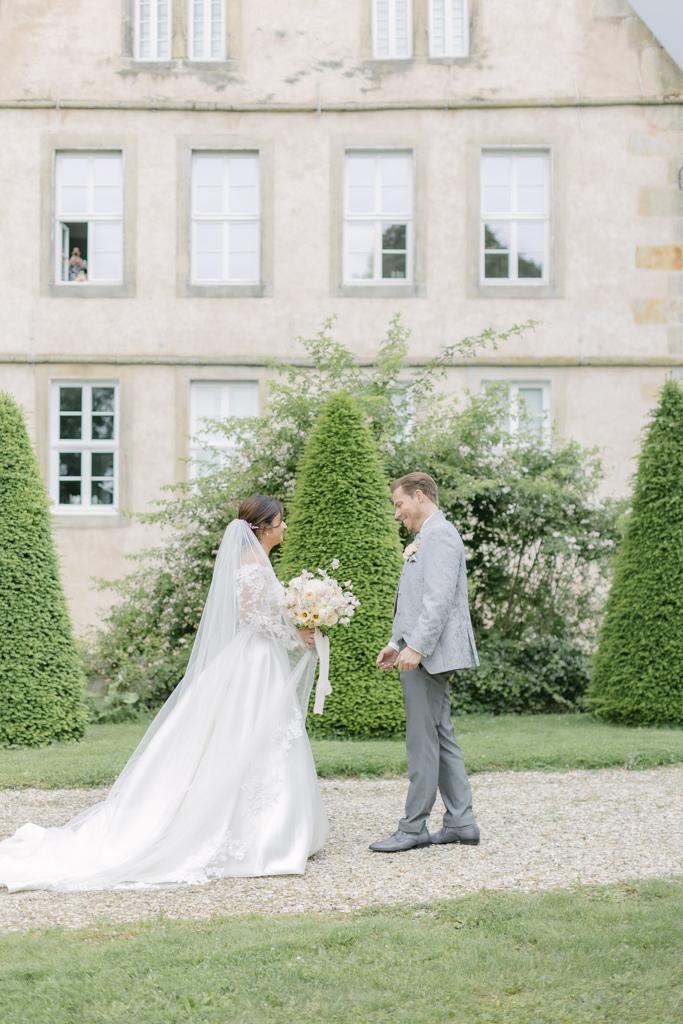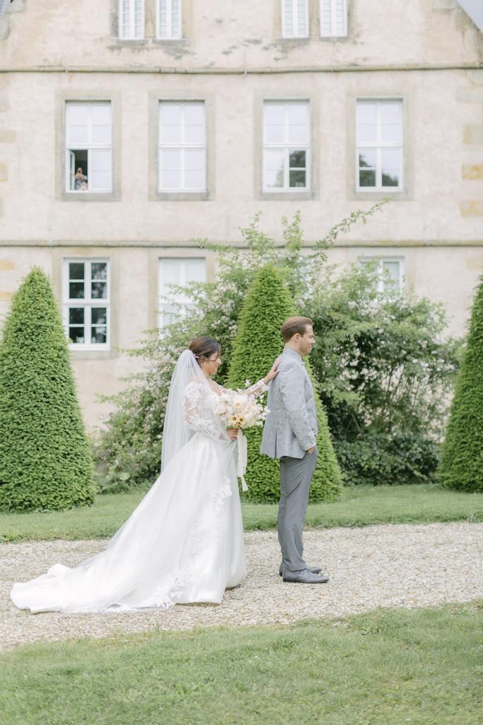 Der Vorteil: Paare mit First Look können bis zu 80 Prozent ihrer Portraitfotos vor der Zeremonie erledigen. Nach der Trauung sind dann nur noch 20 bis 30 Minuten für Fotos nötig, und ihr könnt schneller zu euren Gästen und zum Sektempfang übergehen.